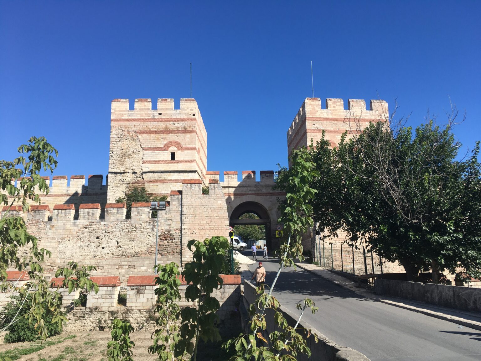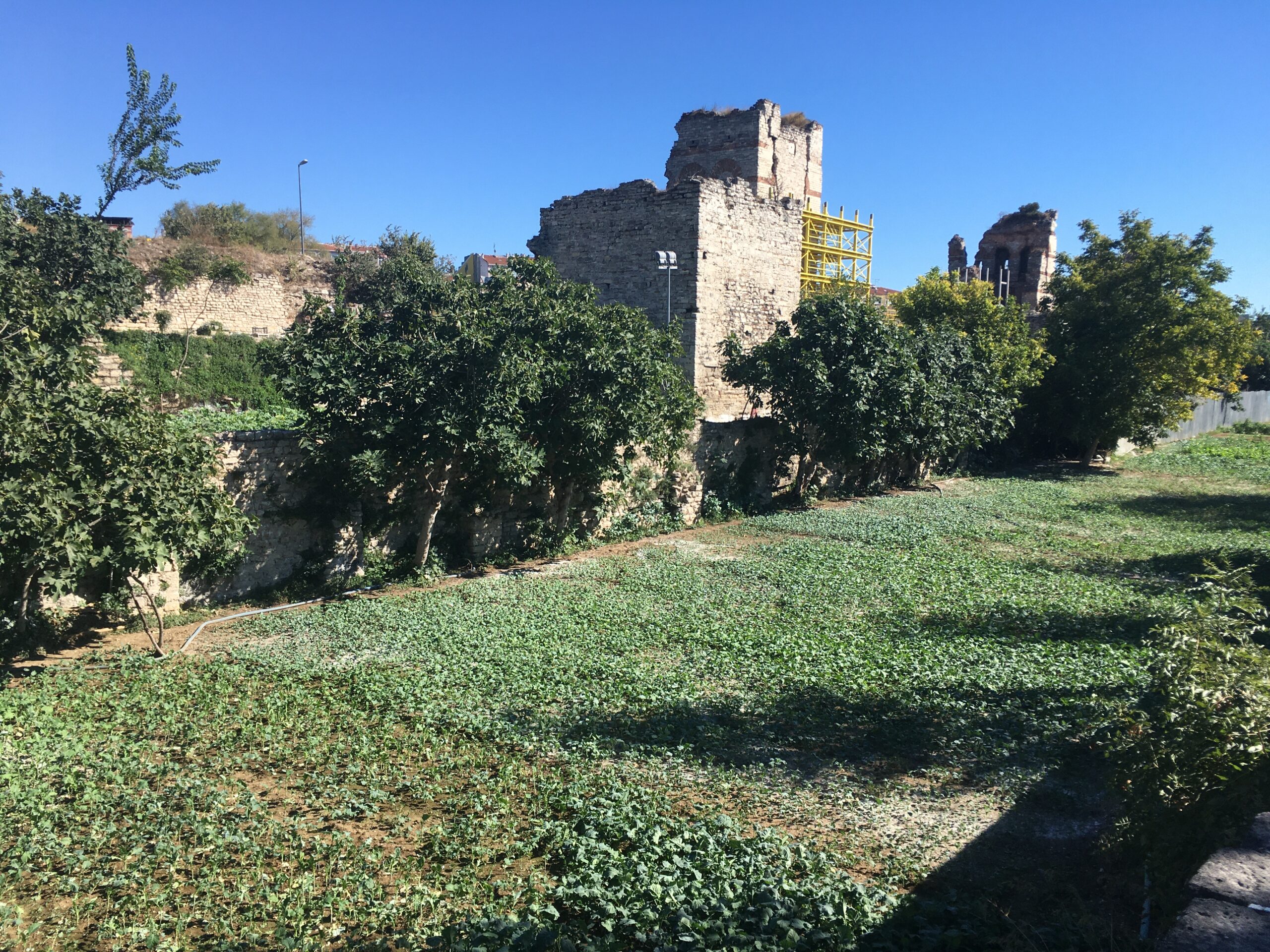 From an imperial treasury building to dark dungeon cells for royals and officials. Walk on the Theodosian city wall and trenches front those are filled in Garden today. Nice spots to view sea of Marmara, Princesses Islands and watch thousands of ships waiting to get access along Bosphorus to Black Sea. Watching them is like watching a documentary of city commercial life. We walk down to walls near by Golden Gate…